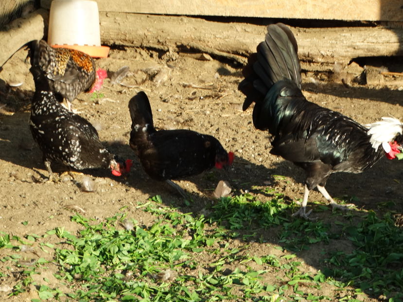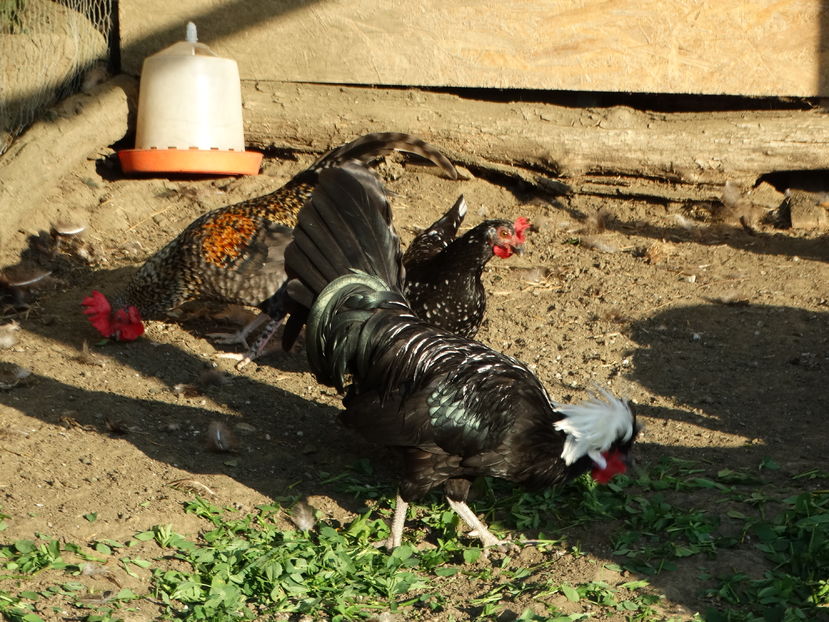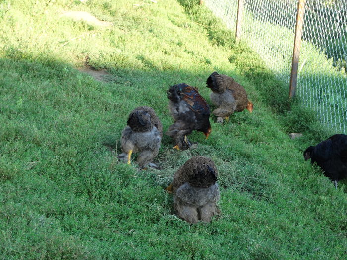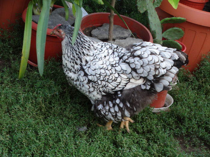 Gaini am 3,toate sunt la fel la marime. Nu sunt mai mici decat cocosii, cea din poza sta pitita si de aia pare mai mica. Mai am si doua puicute de anul asta, sunt surori cu cocoseii din ultimele poze.